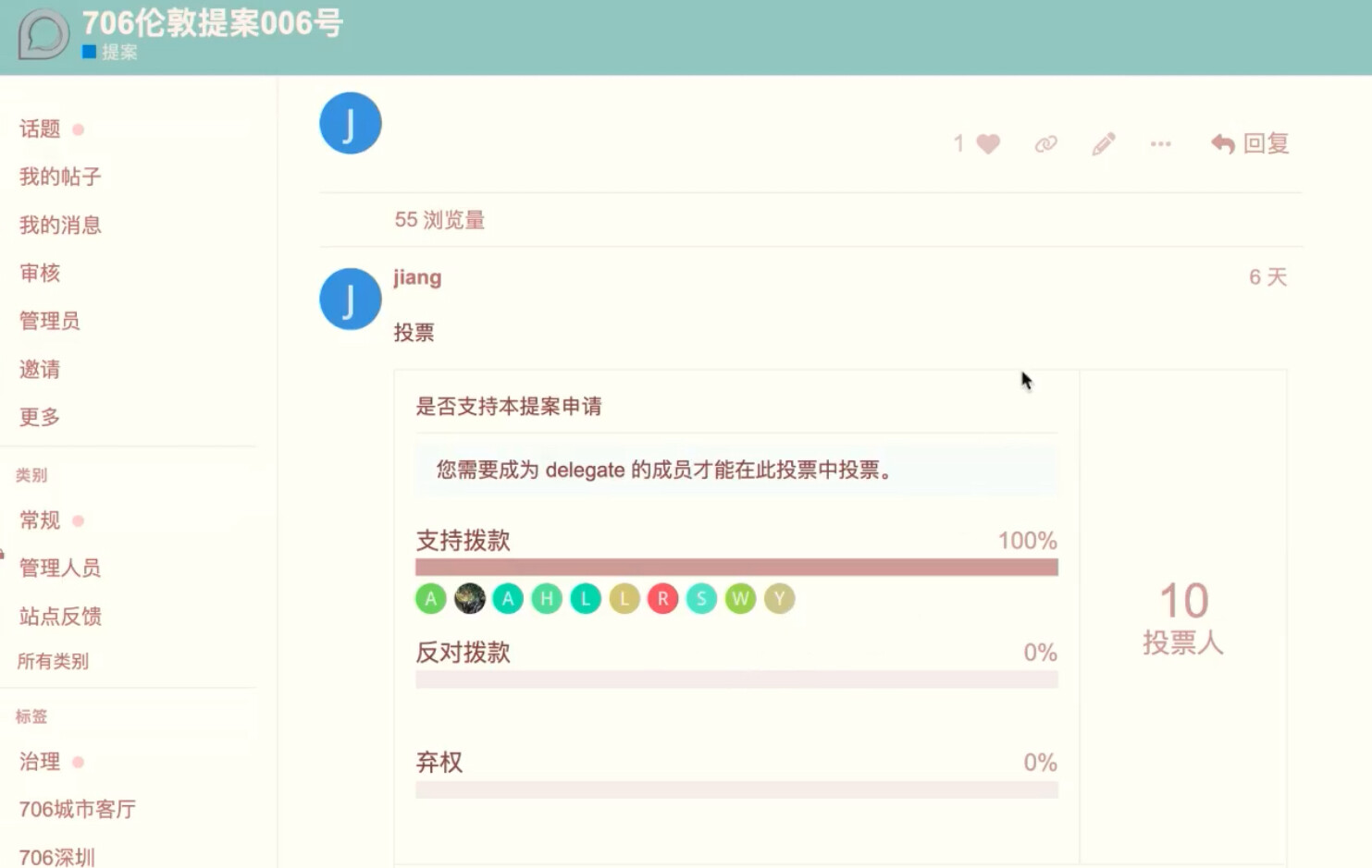 ○ 对公共治理暂时不感兴趣或无暇参与的社群单元,尊重其自主决定,不强求或施压其一定成为投票节点,但保留转化通道。对其没有类似节点的定期考核,但需确认其实际参与706社区建设的事实基础。如果不参与706社区建设,可以以私人名义建立社群,而不以706名义。